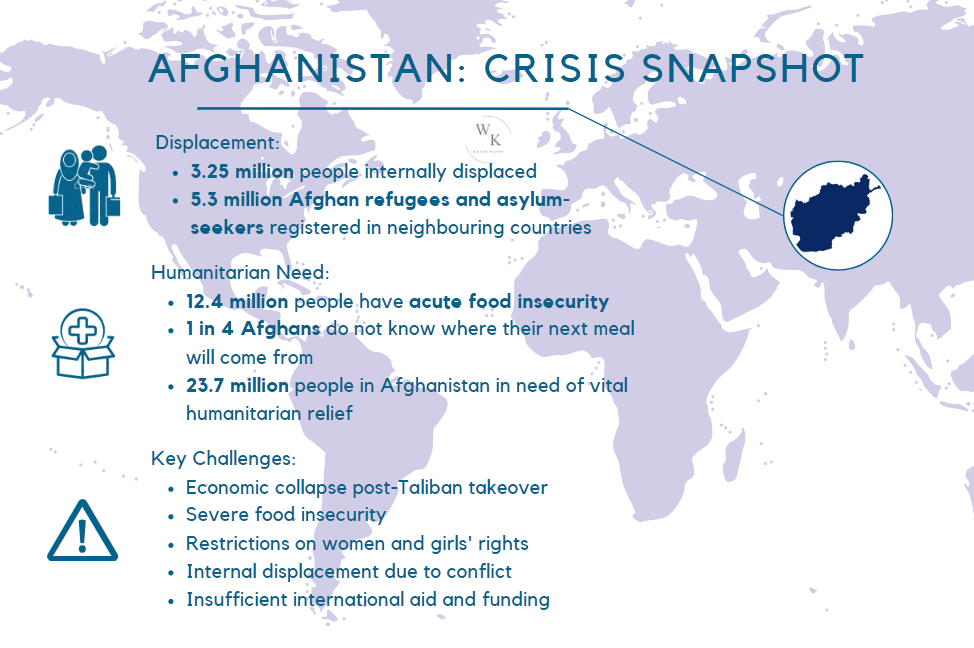 Note: The crisis snapshots in this blog were created by Walae Kasmi, drawing from various credible resources such as UNHCR, IOM, the Migration Data Portal, IRC, ReliefWeb, and reports from various UN agencies to bring you reliable data that illustrates the depth of the humanitarian challenges discussed.